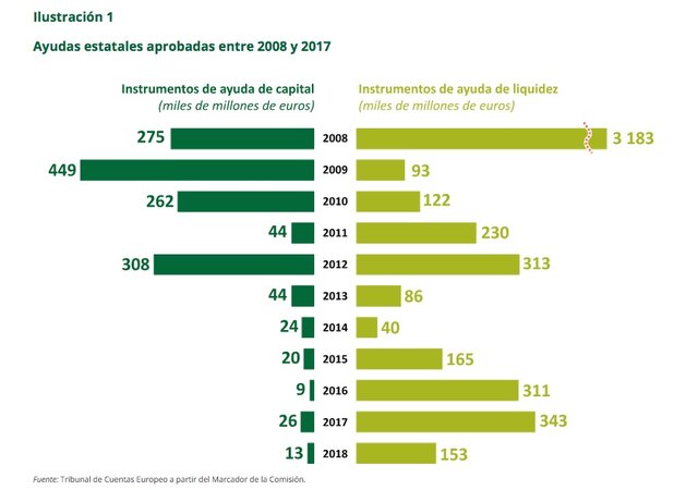 Cabe recordar que el rescate público a la banca de la UE desde la crisis de 2008 hasta 2017 supera los seis billones de euros, entre instrumentos de ayuda de capital (1,12 billones de euros) e instrumentos de ayuda de liquidez (5,03 billones de euros) según el Informe Especial 21/2020 del Tribunal de Cuentas Europeo [7]. “Desde la crisis de 2008 hasta hoy, el sector de los servicios financieros ha recibido muchas más ayudas estatales que cualquier otro sector de la economía”, señaló en su momento Mihails Kozlovs, Miembro del Tribunal de Cuentas Europeo encargado de la auditoría. “Es crucial que se realice un control apropiado y exhaustivo de estas ayudas estatales para proteger la competencia en el mercado interior, así como a los contribuyentes de la UE de la carga de los rescates bancarios”, añadió.