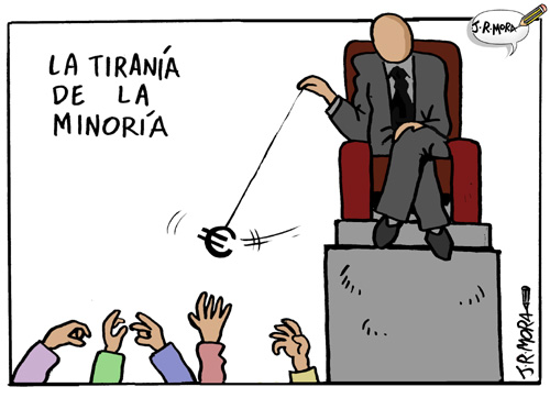 Entrámos agora numa era em que são os próprios interessados (banqueiros, gestores das grandes fortunas, administradores financeiros, etc.) que tomam assento nos ministérios, sem recorrerem a intermediários e autonomeando-se directamente (num claro sinal de tirania). Na comunicação social, em particular na TV portuguesa, os jornalistas clássicos foram despedidos e os representantes directos da finança tornaram-se comentadores e analistas residentes – os interesses financeiros deixaram de ser um objecto externo em análise; passaram a ser eles próprios, em pessoa, os argumentadores, trucidando todas as regras de ética jornalística. A plutocracia é evidente.