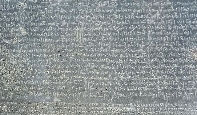 Pedra de Roseta (CC - Wikimedia - https://commons.wikimedia.org/wiki/File:Rosetta_stone_2016.jpg)