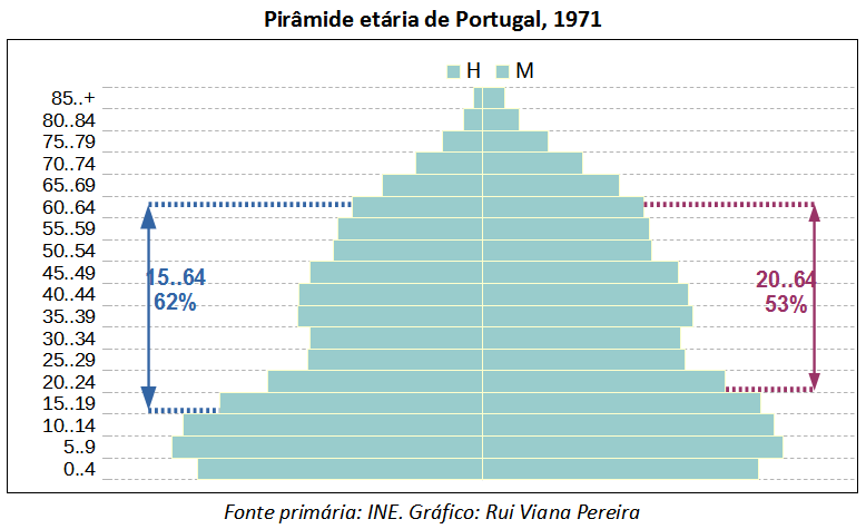 Como interpretar a espantosa transformação da pirâmide etária em Portugal no curto espaço de 40 anos? É neste período que são instalados os serviços sociais de acesso universal à saúde, educação, assistência aos membros mais frágeis da sociedade, etc.